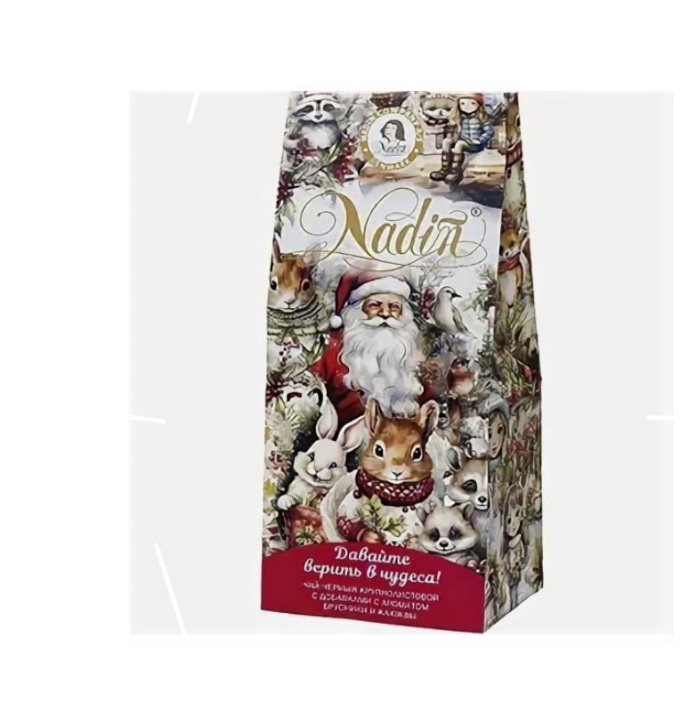 Окунитесь в атмосферу зимних праздников с ароматным чёрным чаем «Подарок Деда Мороза» от Nadin! Этот изысканный напиток сочетает в себе насыщенный вкус классического чёрного чая и нежные фруктовые ноты клубники и лимона.