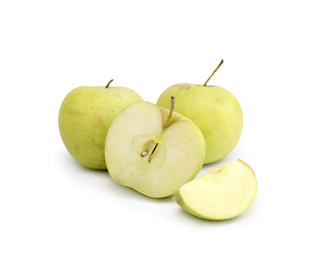 Яблоки Зимний банан отличаются плотной желтой мякотью, вкус которой отдаленно напоминает банан.