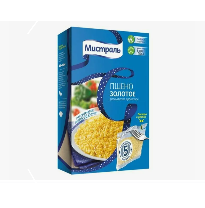 Пшенная крупа «Мистраль» «Золотое» — это отборное, очищенное пшено ярко-желтого цвета. Благодаря расфасовке в порционные пакеты, приготовить рассыпчатую пшенную кашу стало проще простого. Каждый пакет содержит точно отмеренную порцию крупы, которая не требует промывки и перебирания. Пшено получается мягким, нежным и сохраняет всю свою пользу. Идеально для молочных каш и гарниров.