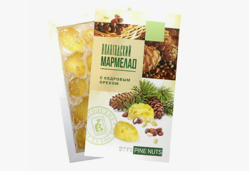Вкусные и полезные сладости от Вологодской кондитерской фабрики. Этот мармелад не оставит равнодушным ни одного сладкоежку благодаря своему медово-кедровому вкусу и натуральному составу.