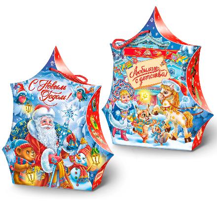 Маленькая картонная коробочка в виде новогоднего фонарика с добрыми зимними картинками - прекрасный новогодний подарок для малышей. Всего 250 г конфет, которые можно разделить с друзьями или выложить дома в вазочку и наслаждаться всей семьей. Набор не содержит карамель.
