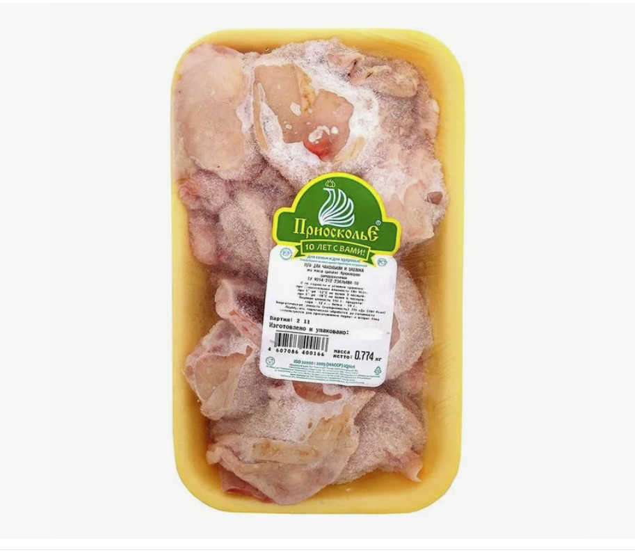 Полуфабрикат из мяса цыплят-бройлеров, в составе нет пищевой химии, а при разморозке цвет окорочков — бледно-жёлтый, кожа чистая, без перьев и очин.