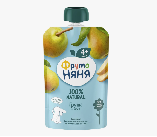 ФрутоНяня пюре грушевое натуральное для питания детей раннего возраста. Гомогенизированное. Стерилизованное.