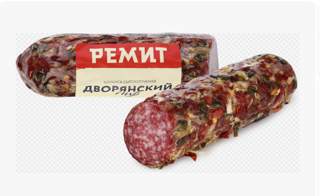 Главная особенность — нарядная обсыпка из сушеных овощей и пряностей, которая не только создает эстетичный вид на нарезке, но и придает мясу пикантный, глубокий аромат. Мелкозернистый рисунок на срезе в сочетании с яркой палитрой специй делает этот продукт идеальным центром любой мясной тарелки.